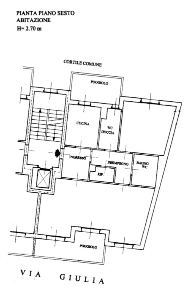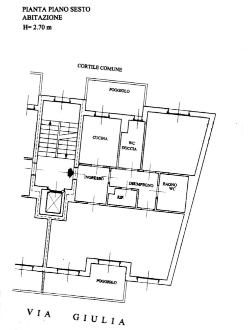 VIA GIULIA: luminoso trilocale con doppio balcone al piano alto di uno stabile SENZA BARRIERE ARCHITETTONICHE.