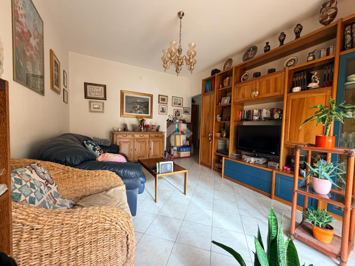 L’appartamento è situato al terzo piano del palazzo e affaccia totalmente a Sud. La zona giorno è composta di un luminoso soggiorno con accesso al balcone e di una cucina abitabile con accesso allo stesso balcone. La zona notte è caratterizzata da una spaziosa camera da letto matrimoniale e da un bagno completo finestrato con doccia.
